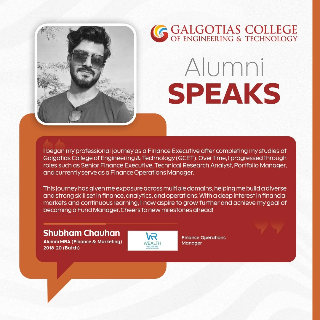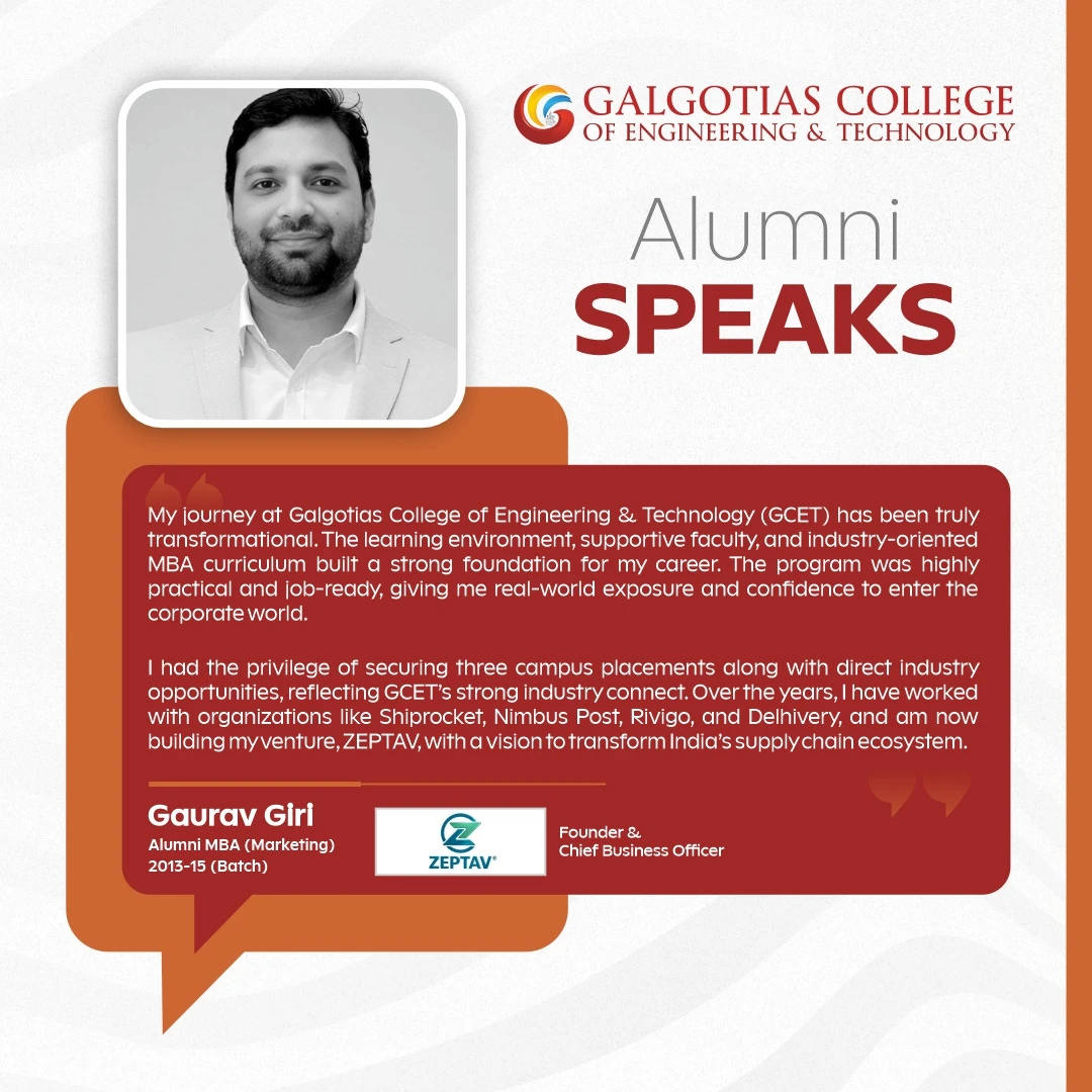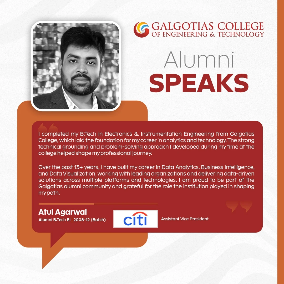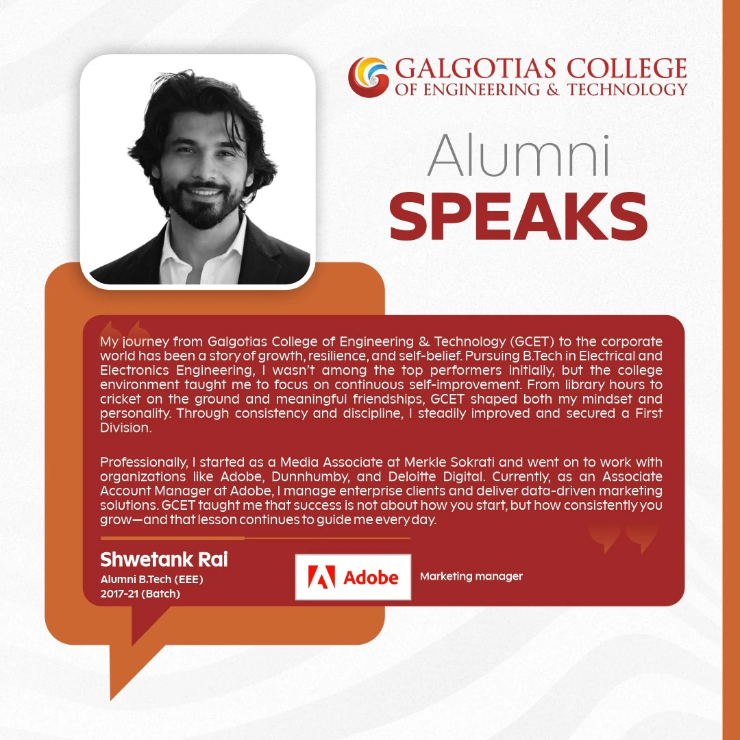 Celebrating the achievements and inspiring journeys of graduates from Galgotias College who are making a difference across the globe.
